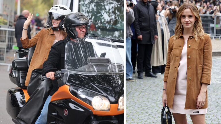 Емма Вотсон та її рожева мінісукня покинули паризький показ Miu Miu на мотоциклі