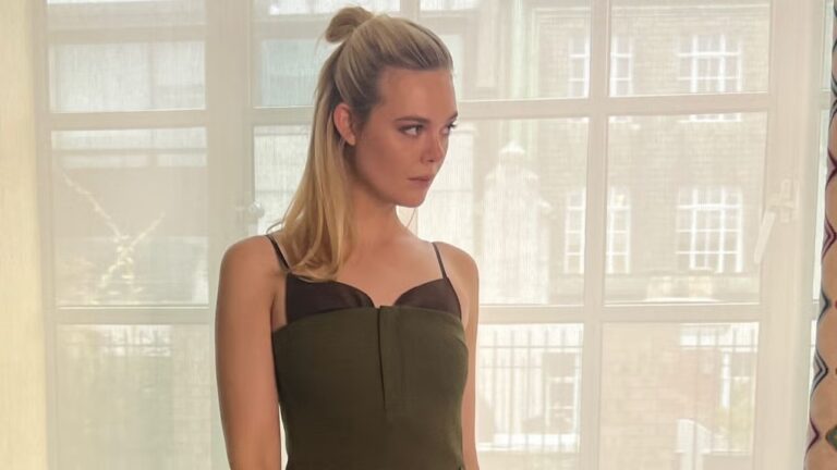 Ель Фаннінг обирає осінні відтінки в оливковому наборі від шанхайського бренду Shushu/Tong