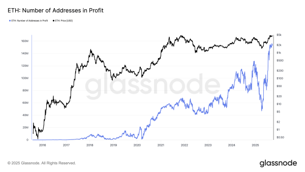 Згідно з даними Glassnode, кількість ETH-адрес, що зафіксували прибуток, перевищила 155 млн у вересні.