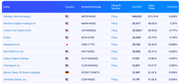 На момент написання 188 компаній по всьому світу приєдналися до стратегії накопичення біткоїну. Під їх керуванням знаходиться 4,6% від загальної пропозиції активу.