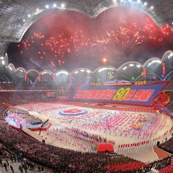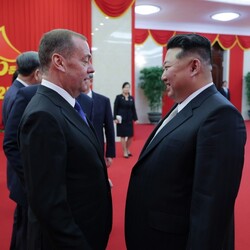 Чи був на концерті Дмитро Медведєв, який поїхав у Пхеньян замість Путіна, невідомо. Але зате його сфотографували ввечері 9 жовтня на Стадіоні “1 Травня” на острові Ринра, де урочисто відбулися масові гімнастичні та художні виступи “Хай живе Трудова партія Кореї”. На фото видно, що він сидів в одному ряду з Кім Чен Ином, але трохи віддалік, оскільки почесні місця поруч займали представники Китаю.