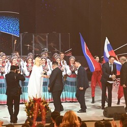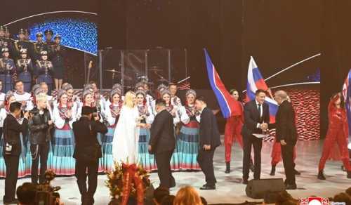 На сцені театру “Мансуде” в Пхеньяні виступили артисти балетної трупи Алли Духової “Тодес”, колектив Державного академічного російського народного хору імені П’ятницького, Ансамбль пісні і танцю Повітряно-космічних сил Російської Федерації, а також російський співак Shaman. Наприкінці вечора диктатор із посмішкою обійняв співака, подякував гостям і вручив їм кошик квітів.